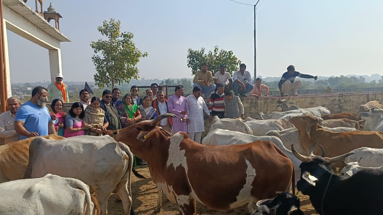 कार्यक्रमों की शुरुआत स्थानीय गौशाला से हुई, जहां कार्यकर्ताओं ने गौ माता की पूजा-अर्चना की और उन्हें हरा चारा और दलिया खिलाया।