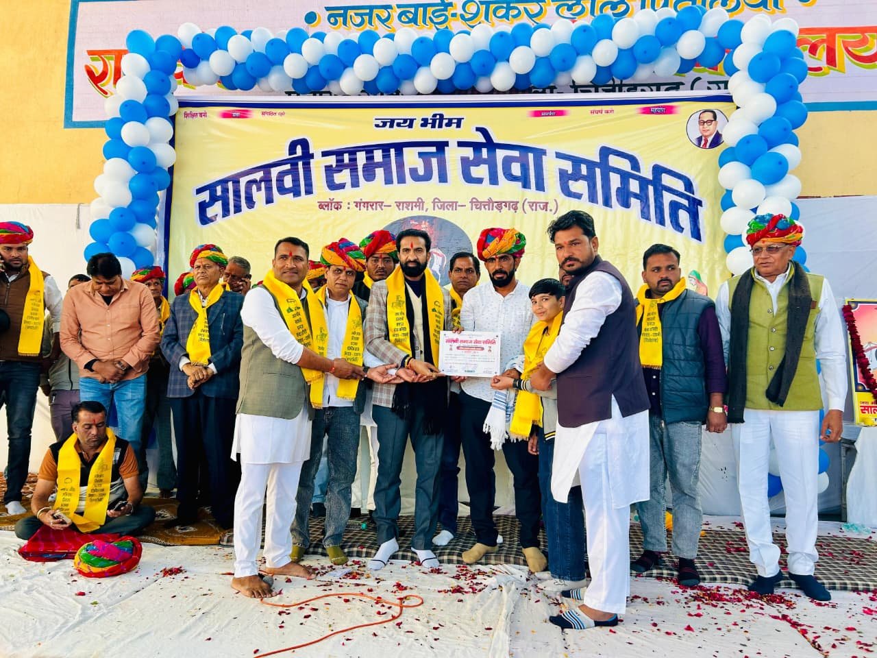 जय भीम सालवी समाज सेवा समिति गंगरार राशमी द्वारा ग्राम जाडाना मैं आयोजित रक्तदान शिविर प्रतिभावान छात्र-छात्रा सम्मान समारोह एवं निशुल्क नेत्र चिकित्सा शिविर का आयोजन स्थानीय विधायक अर्जुन लाल जीनगर के मुख्य अतिथि में नजर बाई शंकर लाल पीतलिया राजकीय विद्यालय में आयोजित हुआ । विधायक अर्जुन लाल जीनगर ने रक्तदान की महत्ता पर प्रकाश डालते हुए कहा कि रक्त का निर्माण मशीनों में नहीं हो सकता यह दान का एक अनुपम तरीका है जिससे किसी को जीवन दान दिया जा सकता है । साथ शिक्षा के महत्व पर प्रकाश डाला साथ ही राशमी में छात्रावास हेतु भूमि आवंटन की घोषणा की । सालवी समाज मातृकुंडिया ट्रस्ट के अध्यक्ष शंकर लाल सालवी स्थानीय ग्राम पंचायत प्रशासिका रतनी देवी प्रधानाचार्य श्रीमती कांता पूर्व सरपंच संजय सुखवाल ने दीप प्रज्वलन कर कार्यक्रम का शुभारंभ किया । डेयरी चेयरमैन बद्रीलाल जाट ने सामूहिक विवाह सम्मेलन की महत्व को समझाते हुए सालवी समाज के होने वाले सामूहिक विवाह सम्मेलन में 101000 रुपए देने की घोषणा की । भामाशाह शंकर लाल पितलिया ने मानव सेवार्थ इस पुनीत कार्य की सराहना करते हुए कहां की व्यक्ति धन से नहीं धन के परमार्थ से बड़ा होता है । एम टू निशुल्क शिक्षण अभियान गंगरार के संस्थापक मनोज मीणा ने उपस्थित सभी श्रोताओं को शिक्षा का महत्व बताते हुए आश्वस्त किया कि आप केवल बच्चों को पढ़ाने का मन बनाइए, पढ़ा हम देंगे । समाजसेवी और भाजपा पुर्व जिला महामंत्री भीलवाड़ा रोशन मेघवंशी भीलवाड़ा ने समाज की राजनीति में भागीदारी को आवश्यक बताया एवं मातृकुंडिया ट्रस्ट सालवी समाज शिक्षा कोष में 41000 की सहायता की। कार्यक्रम में 168 यूनिट रक्तदान, 61 समाज की प्रतिभाओं का सम्मान , 200 से अधिक लोगों की आंखों की जांच की जिसमें से 41 को ऑपरेशन हेतु उदयपुर भेजा। सांवलिया हॉस्पिटल टीम चित्तौड़, रक्तदाता युवा वाहिनी एवं महाराणा भूपाल चिकित्सालय टीम उदयपुर, जय चित्तौड़ ब्लड बैंक ने रक्त संग्रह किया । अलख नयन नेत्र चिकित्सालय उदयपुर की टीम ने आंखों की जांच की । कार्यक्रम में प्रदेश महासचिव कांग्रेस ललित बोरीवाल, राशमी पंचायत समिति प्रधान दिनेश बुनकर, मेघवंशी युवा परिषद भीलवाड़ा के अध्यक्ष शंकर लाल डांगी, सालवी समाज नवयुवक संस्थान चित्तौड़गढ़ के अध्यक्ष श्याम सालवी, बलाई महासभा प्रदेश सचिव हंसराज सालवी, सूत्रकर महासभा अध्यक्ष गोपाल सुरंजना, सोला खेड़ा अध्यक्ष कन्हैयालाल बड़ी सादड़ी, सालवी महासभा जिला अध्यक्ष राजेंद्र सुरजना, भीलवाड़ा सालवी समाज छात्रावास अध्यक्ष भंवर मेघवंशी, चंदेरिया चोखला अध्यक्ष मदन सालवी, उगामना चोकला अध्यक्ष रतन सालवी, पूर्व पार्षद गोपाल सालवी, राशमी भाजपा मंडल अध्यक्ष नारायण लाल