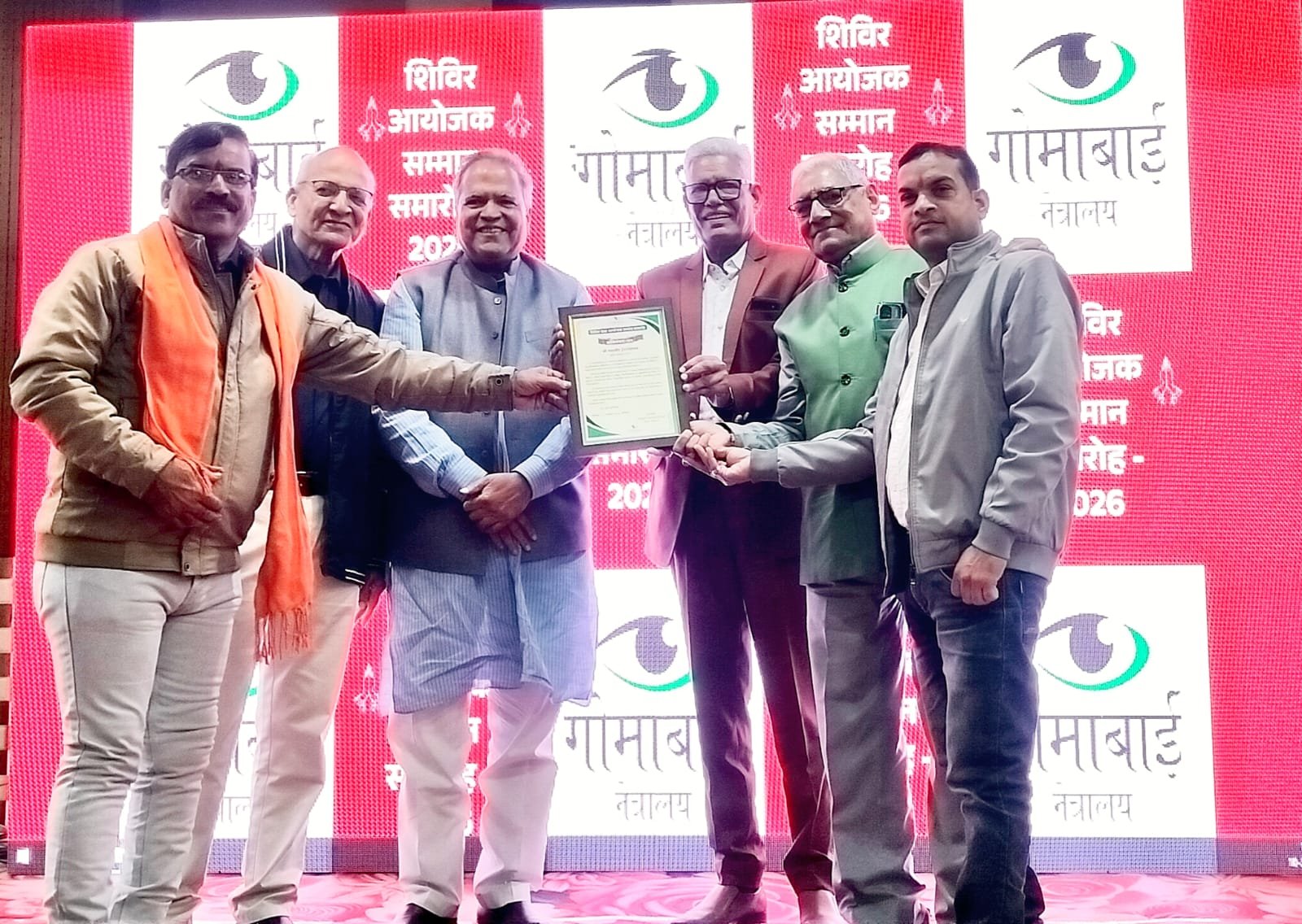 गोमाबाई नेत्रालय नीमच द्वारा आयोजित शिविर आयोजित सम्मान समारोह में महावीर इंटरनेशनल छोटी साड़ी को सर्वश्रेष्ठ ऑपरेशन हेतु सम्मानित किया गया इस सम्मान समारोह में मध्य प्रदेश राजस्थान के कई सामाजिक सस्थाओ नें भाग लिया जिसमें छोटी सादड़ी के महावीर इंटरनेशनल द्वारा वर्ष भर में 790 नेत्र परीक्षण व जांच की गई और 308 मोतियाबिंद के ऑपरेशन करवाए गए व 2025 तक 6720 मोतियाबिंद ऑपरेशन करवाए गए इस हेतु गोमाबाई नेत्रालय के ट्रस्टी महेश गर्ग, समाजसेवी जम्मू गर्ग,एवं अनिल एस गोयल व अनिल गोयल द्वारा महावीर इंटरनेशनल छोटी सादड़ी के जोन डायरेक्ट कांतिलाल दक, अध्यक्ष कैलाश गिरी गोस्वामी व सचिव लोकेश जायसवाल को सम्मान पत्र देकर सम्मानित किया गया इस आयोजन में भीलवाड़ा, कोटडी, चित्तौड़गढ़ निंबाहेड़ा, मंदसौर, मनासा,जावद, राजस्थान मध्य प्रदेश के कई सिविर आयोजक सम्मलित हुए